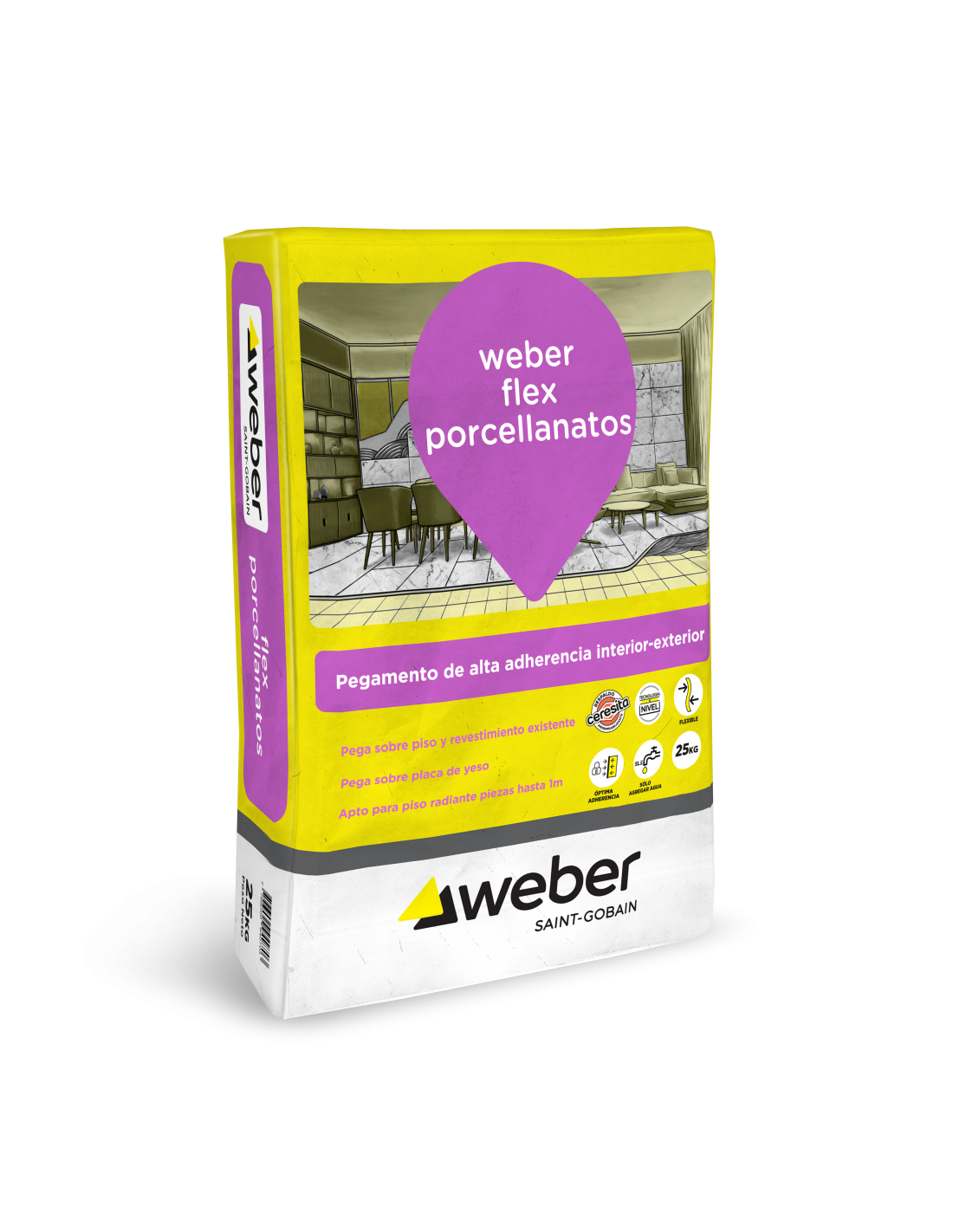 Pegamento flexible para colocar cerámicas y porcellanatos en exteriores y pisos radiantes.